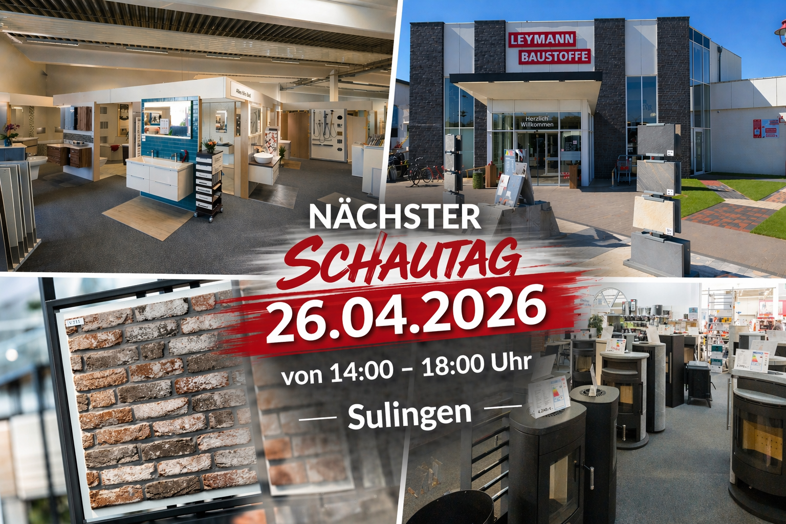 Am Sonntag, 26.04.2026 lädt Sie die Leymann Baustoffe Filiale Sulingen von 14 bis 18 Uhr zum Schautag ein.